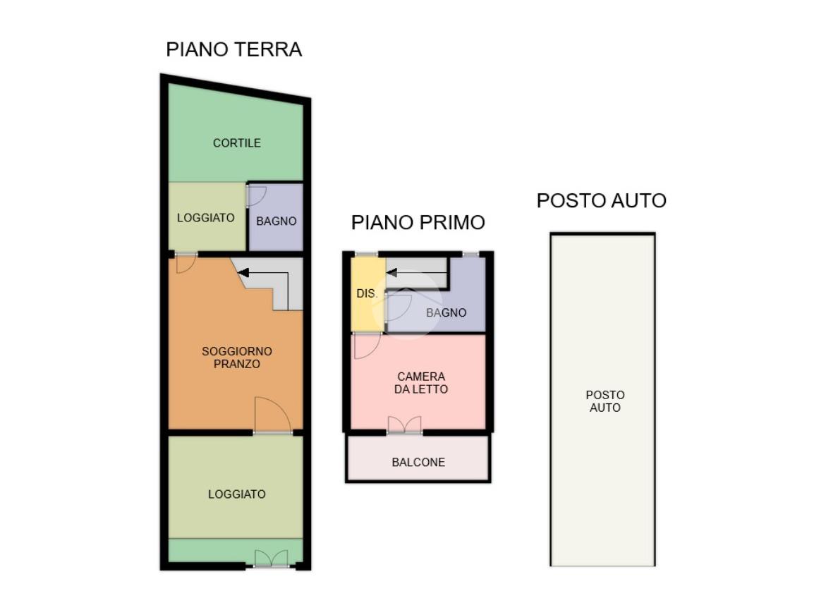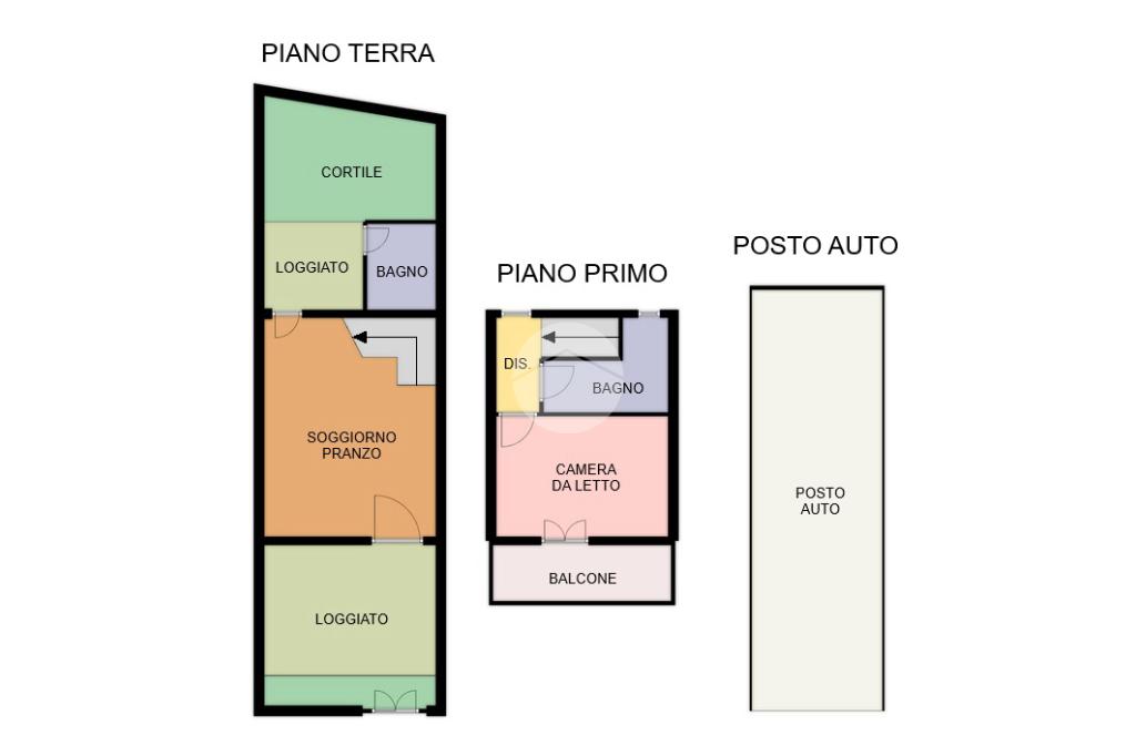 Delle comode scale collegano il piano terra al piano primo in cui trova spazio la zona notte composta da camera da letto con balcone e bagno finestrato con doccia.