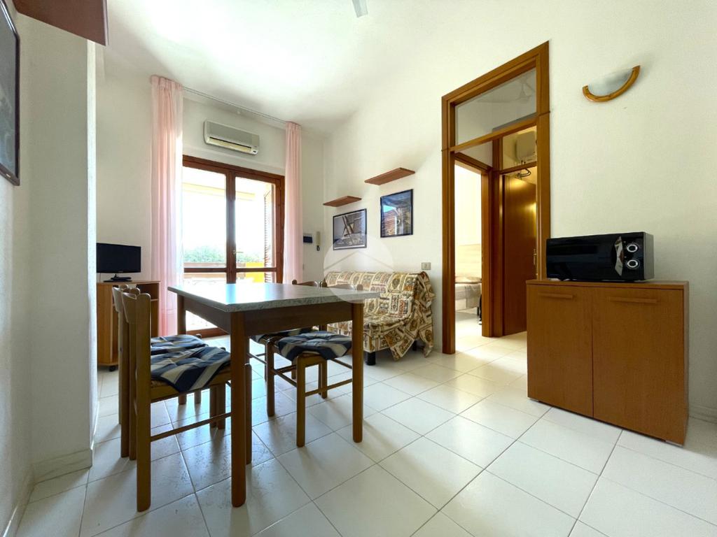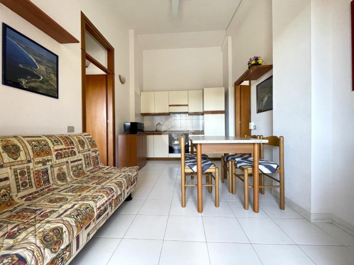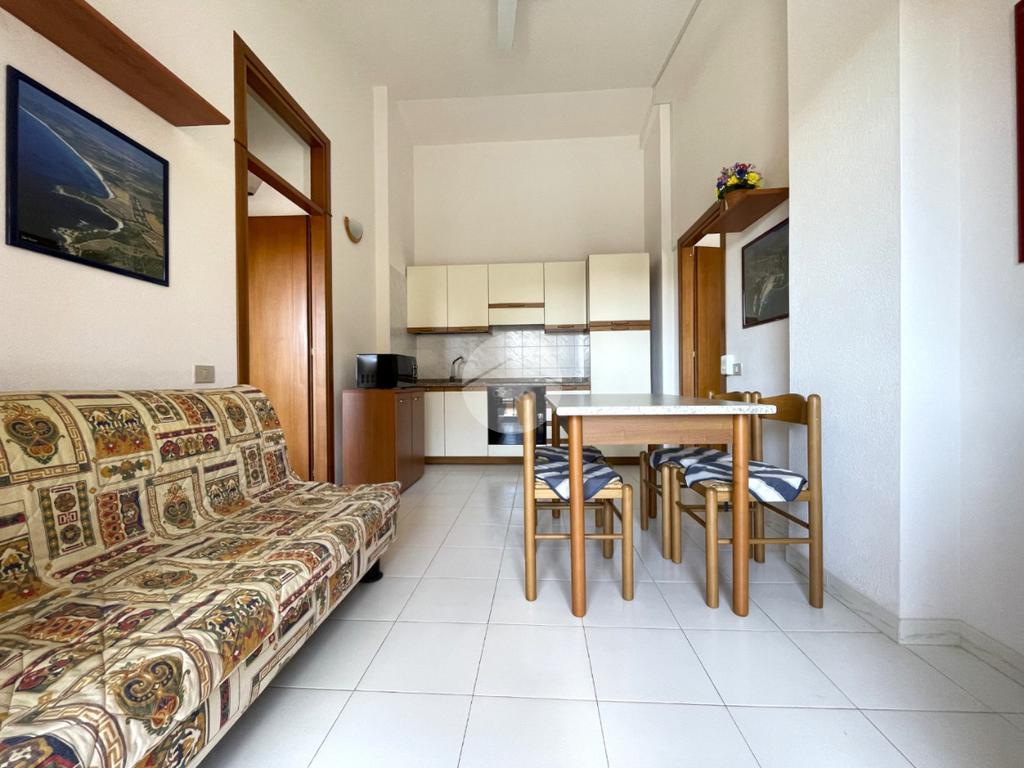 VILLASIMIUS - In via Foscolo, in zona residenziale pianeggiante e vicina ai servizi, trivano al piano primo con spazio esterno. Attraverso un corsello comune, si raggiunge la scala che porta alla veranda esterna, utile come spazio da utilizzare per piacevoli momenti di convivialità. Una cucina-pranzo di forma regolare dotata di parete cottura, divano e tavolo da pranzo, si trova in posizione centrale rispetto ai restanti ambienti della casa. Nell'ala sinistra dell'immobile trova spazio il bagno con doccia, seguito dalla prima camera da letto con ingresso indipendente dall'esterno e di dimensioni sufficienti ad accogliere un letto seconda camera da letto, posizionata nell'ala destra, è di ampiezza più generosa. L'immobile si presenta in buono stato manutentivo, è climatizzato e viene venduto arredato. Si consiglia la soluzione a chi è alla ricerca di una residenza estiva o di un investimento dalle ottime rendite e con costi di gestione bassi. Costi condominiali: 300 euro all'anno.