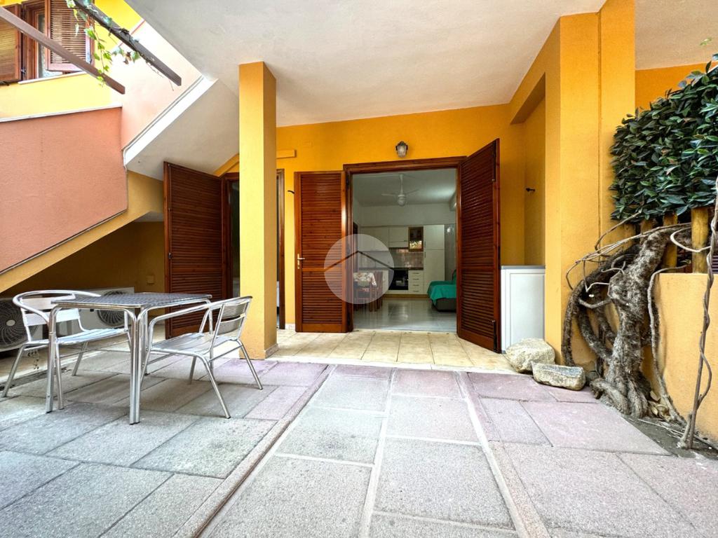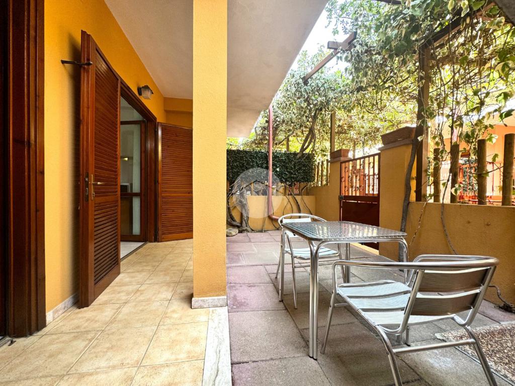 VILLASIMIUS - In zona residenziale pianeggiante e vicinissima ai servizi,all'interno di uno splendido complesso ricco di verde e ottimamente curato, appartamento bilocale al piano terra con cortile. Con ingresso da via Foscolo, percorso qualche metro di un corsello comune ad altre unità si accede alla proprietà privata tramite un cancelletto che porta al cortile lastricato. Internamente l'immobile è composto da un pranzo-soggiorno luminoso, climatizzato, e arredato di parete cottura e comodo destra della zona giorno, un disimpegno ci conduce alla camera da letto matrimoniale, dotata anche di ingresso indipendente dalla fianco, trova spazio il bagno completo di doccia. L'immobile si presenta in ottime condizioni, è completamente climatizzato e viene venduto arredato. A completare la proprietà, nell'interrato, un posto auto in garage comune. Aspetti fondamentali da tenere conto di questo immobile sono la tipologia piano terra, il buono stato manutentivo e la buona metratura del cortile esterno. Attualmente lo stabile in cui è ubicato l'immobile non è soggetto a condominio ma, nel futuro prossimo, potrà essere costituito. Costi condominiali: 300 euro all'anno.