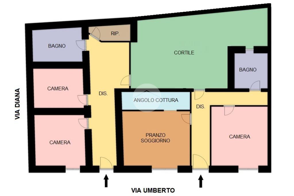 I corridoi delle due costruzioni hanno entrambi affaccio su cortile interno lastricato. L'immobile si presenta in buone condizioni, è completamente climatizzato e viene venduto arredato. Si consiglia la soluzione a chi è alla ricerca di un'abitazione caratteristica dalla posizione unica, pronta per essere adibita ad affittacamere, residenza estiva o locale commerciale. Nessun costo condominiale.